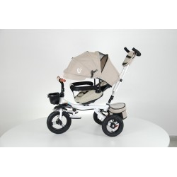 Tricikl je od metalne konstrukcije sa gumenim točkovima i rotirajućem sudištem.