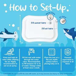 Uvek ostanite pored bebe kada istražuje i igra se sa prostirkom za igru u vodi. Nikada ne ostavljajte bebu bez nadzora na prostirci. Obezbedite podršku i uživajte u zajedničkom vremenu dok se istežu i pomeraju mišiće!