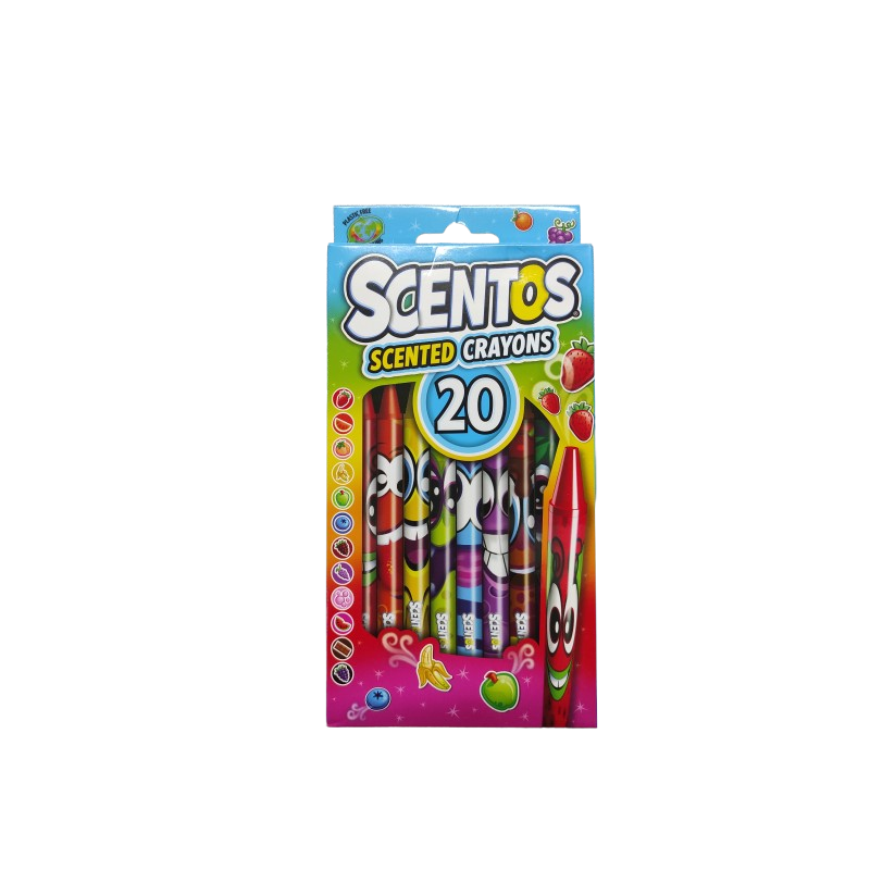 Ako imate malu decu kojoj je dosadno tokom dugih vožnji kolima ili tokom poseta drugim mestima, ovaj Scentos® set sadrži 20 bojice sa ukusnim voćnim mirisom. Pristupite satima zabave u ovom kompletu Scentos® za zabavu u bojanju i crtanjui, tako da možete da im um i ruke budu zauzeti, a da im elektro uređaji ne trepere na licu!